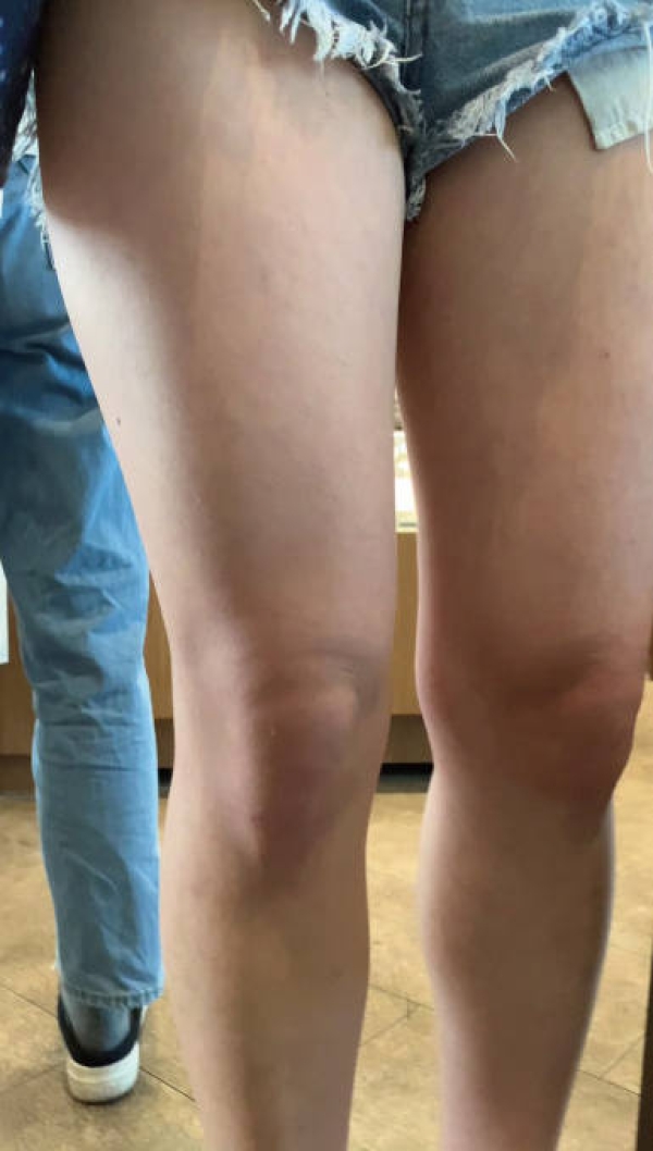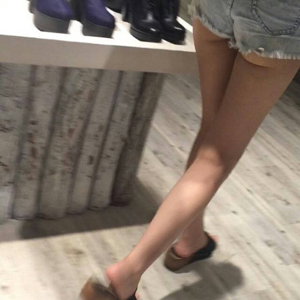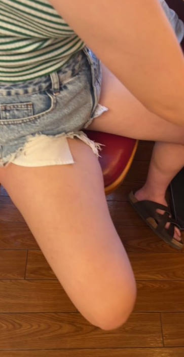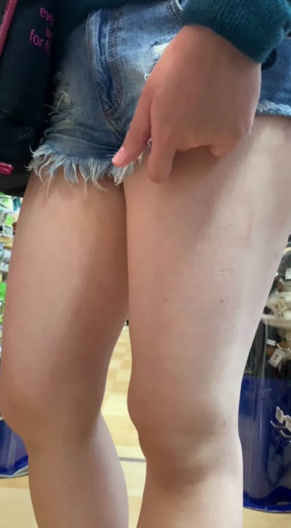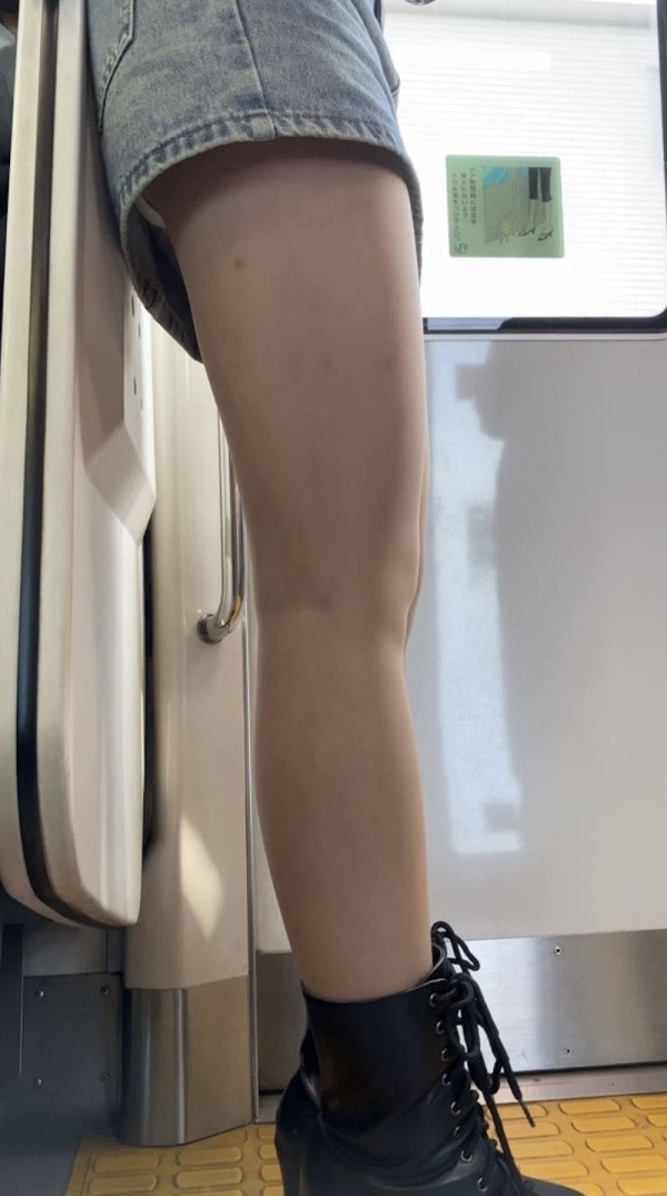 ミニ丈デニム女子の太もも画像
